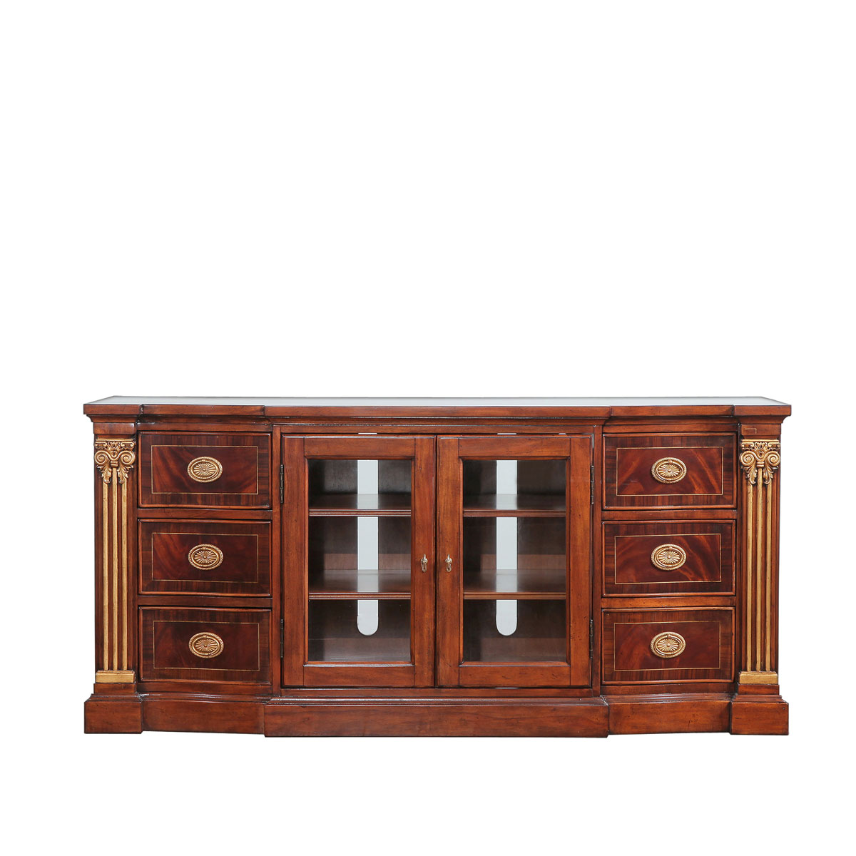 * 为表现英国皇室的华丽和庄严,以英国温莎堡为设计元素。使用优雅的 Ionic Order(爱奥尼克式罗马柱)雕刻,配上耀眼的贴金箔与精美的木皮贴面工艺,完美演绎了英式宫廷家具的奢华尊贵,可谓是极具典藏价值的传世之作。