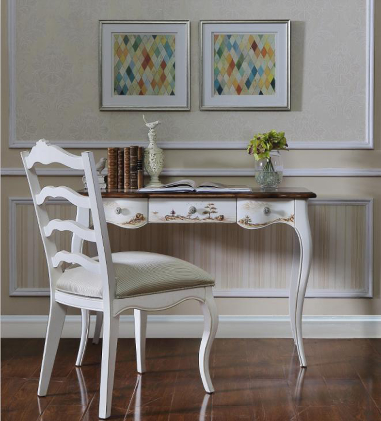 法式休闲家具讲求朴实自然,色彩上以素净、单纯与质朴见长,多采用天空蓝、古董白、原木色等明亮活泼色彩,来表现乡村生活的生机勃勃。搭配小清新的花朵手绘图案,不经意间就流露出法国特有的舒适惬意。
