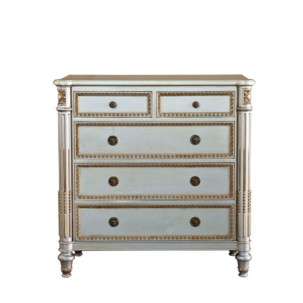 * 为表现法国路易时期的庄严和浪漫,以法国凡尔赛宫为设计元素。使用歌颂路易十四时期的太阳花雕刻;路易十六时期的建筑柱雕刻;显示其王权稳固地位的锥形腿脚设计、古铜色的球形把手和贴金工艺,完美演绎了法式宫廷家具的奢华尊贵。