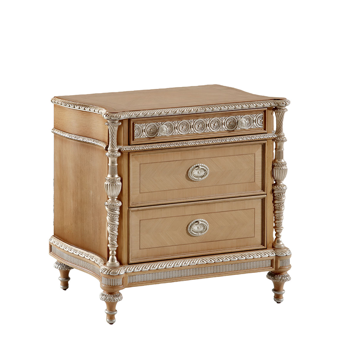 * 手工雕刻的工艺细节结实的连接技术18道以上的多步骤油漆工艺; * 三个储物抽斗,而在其底部采用经典硬木实木滑轨设计; * 脚底部装有可调脚钉;