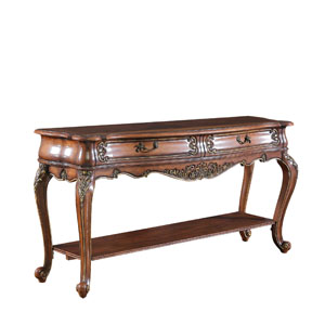 * 手工雕刻的藤蔓、阿坎瑟斯卷叶图案和弯脚设计 * 结实的连接技术 * 面板周边有1个储物抽斗,下设装饰用层板,并在其底部采用经典硬木实木滑轨设计