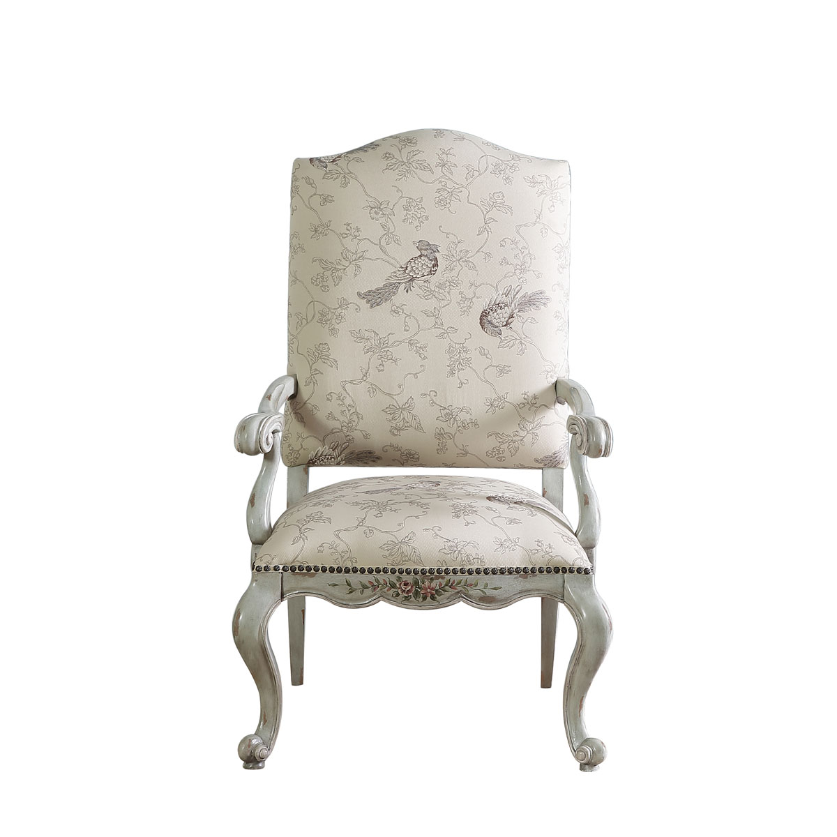 * 一款集合法式元素包括Camelback Silhouette(驼峰轮廓)造型、旋涡形扶手和S形弯脚的高背休闲椅,并配上触感舒适的布艺和包有丰厚的填充物坐垫和靠背;