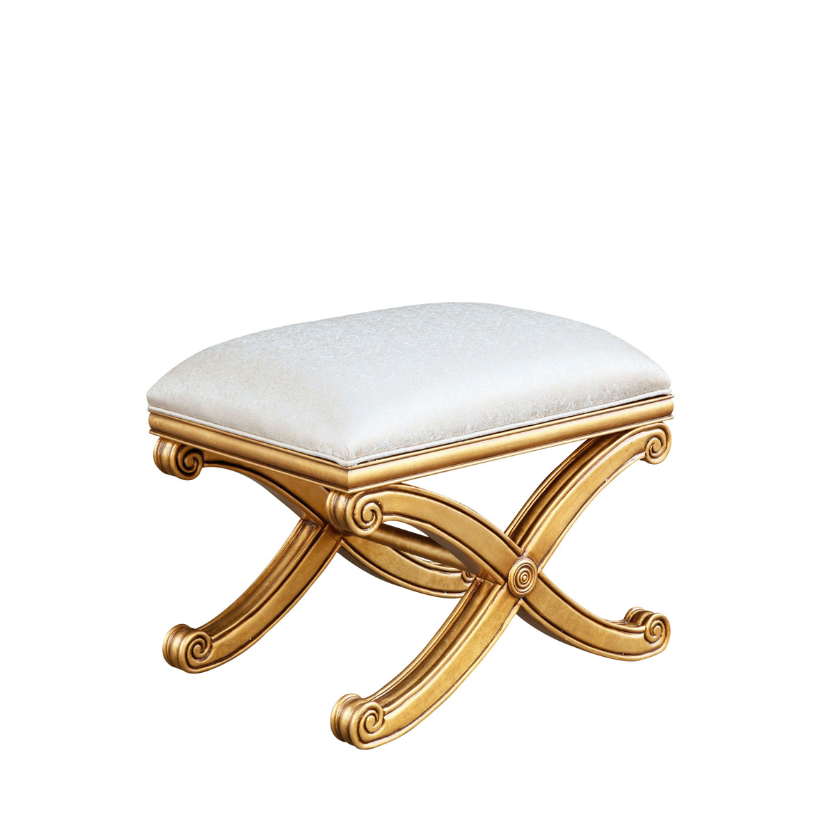 * 线条优美的“X”型腿,源于埃及文化,后被欧式家具采用并成为经典的设计元素。配上英式条纹、涂金工艺和包有丰厚填充物的坐垫,传递了一种舒适惬意、回归自然的休闲家居风格,是经典系列五月花号美式床尾椅的特色。